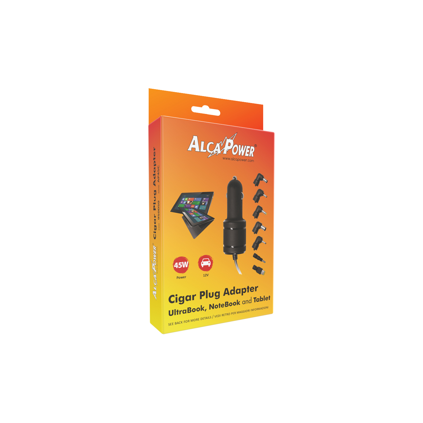 Adattatore veicolare per UltraBook, NoteBook e Tablet.- Ingresso: 12-14V DC- Uscita: 19.5V 2.3A 45W- 7 adattatori d’uscita intercambiabili- Uscita stabilizzata, bassa interferenza e Basso ripple