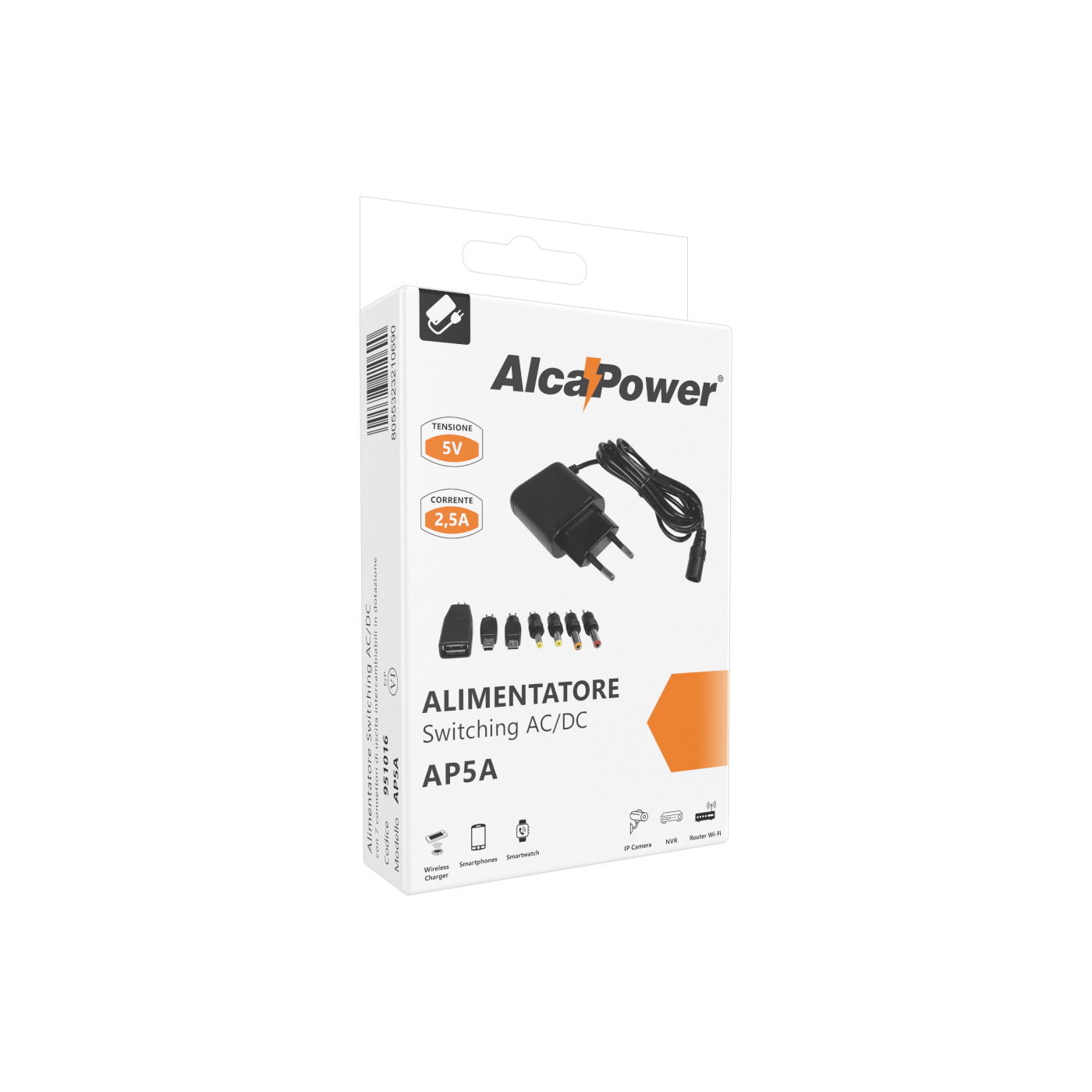 - Uscita: 5,0V DC 2,5A 12,5W.