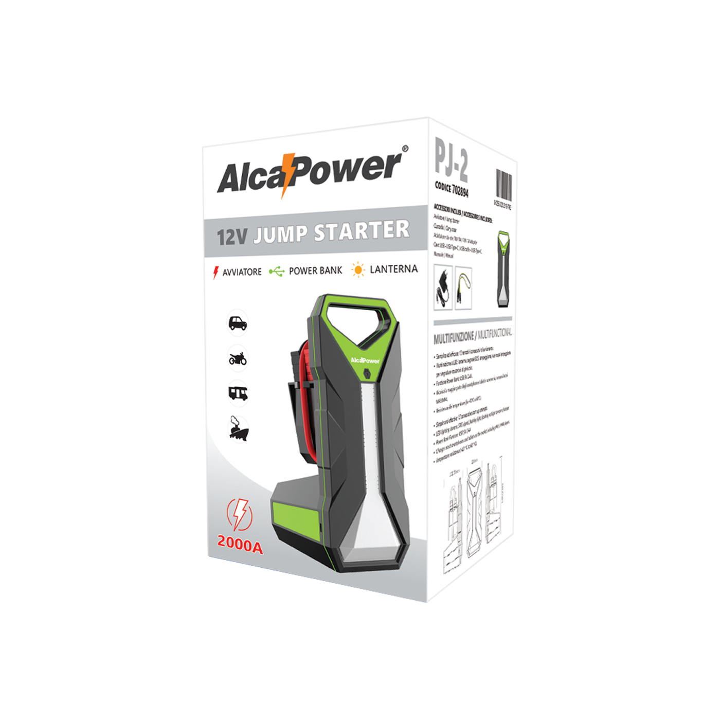 - Avviatore d'emergenza per auto e moto con batteria 12V.