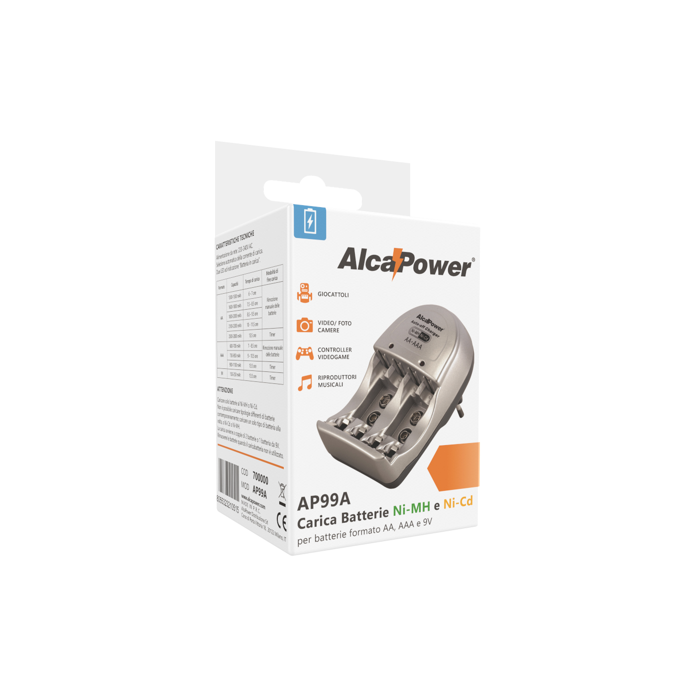 - Ricarica 2 o 4 batterie Ni-Cd o Ni-MH, formato AA e AAA, oppure 1 o 2 batterie 9V allo stesso tempo