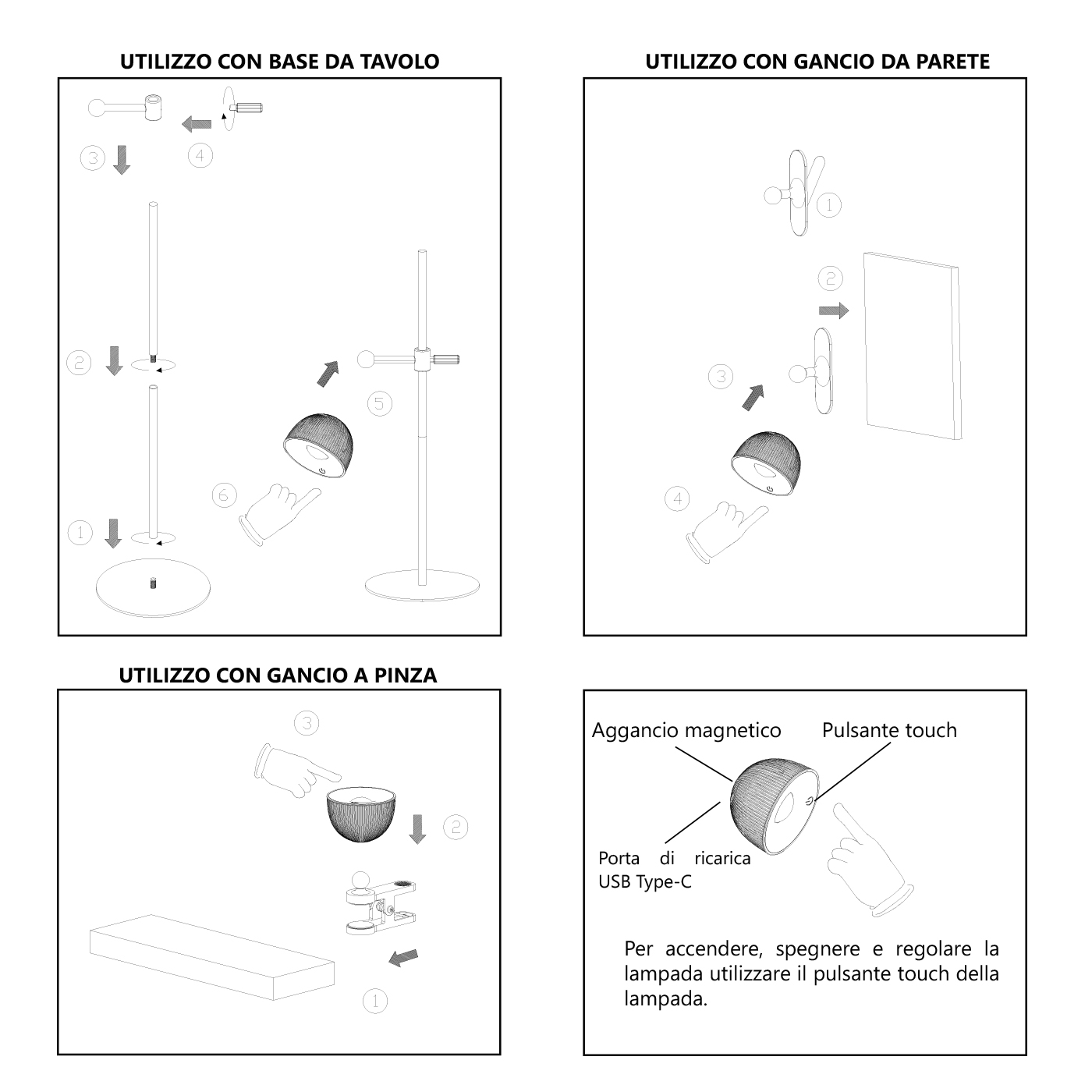 - Autonomia: 3 ore (luminosità 100%) / 6 ore (luminosità 50%) / 16 ore (luminosità 10%)