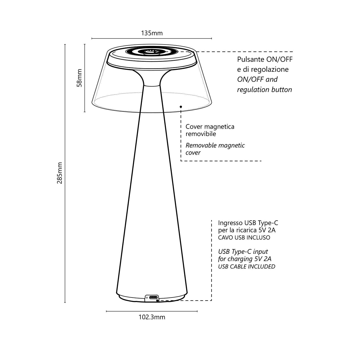 - Dimensioni: Ø135x285mm