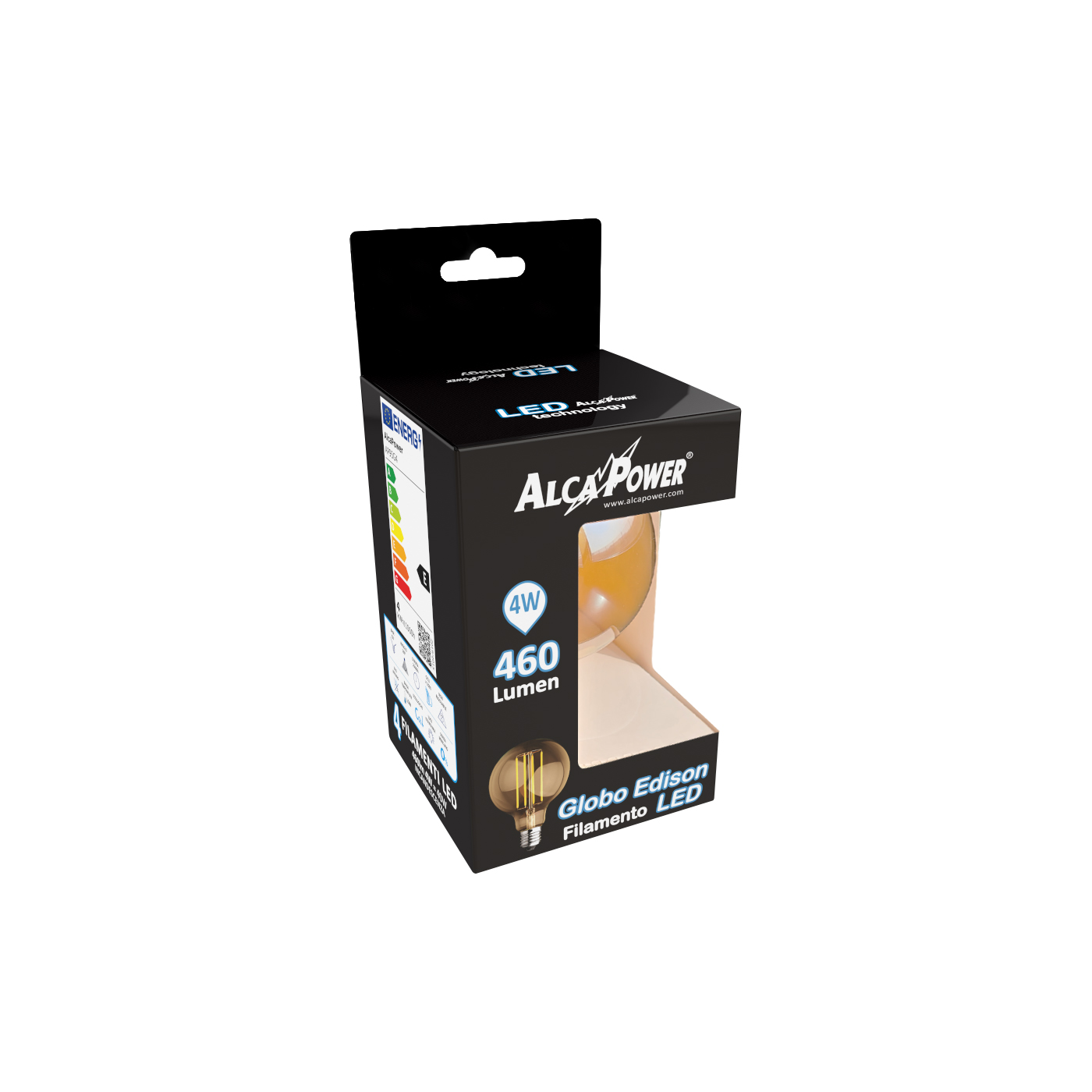 Lampada Globo LEd a Filamento con vetro trasparente color oro