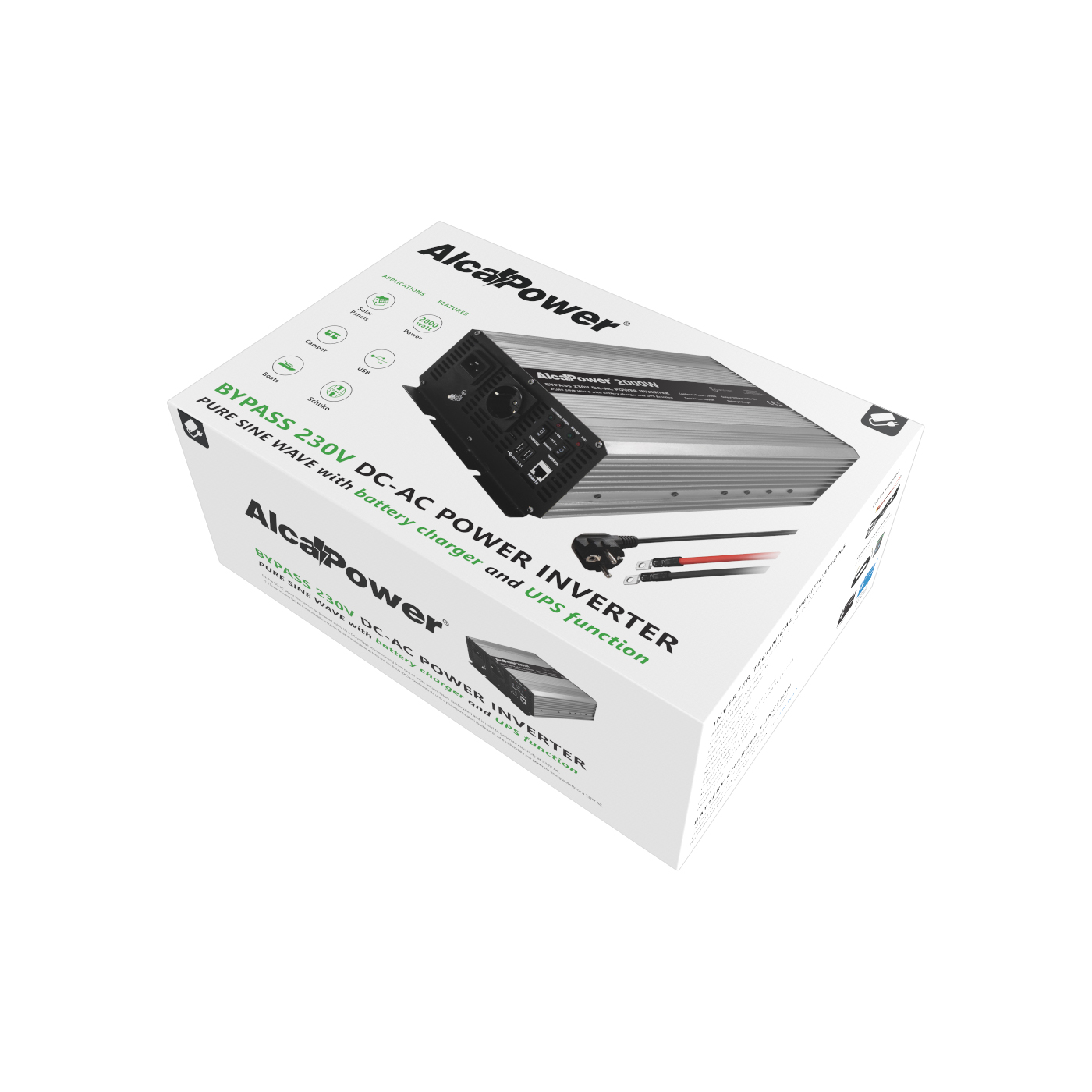Inverter ad onda pura sinusoidale con funzione di by-pass della rete AC e caricabatterie.