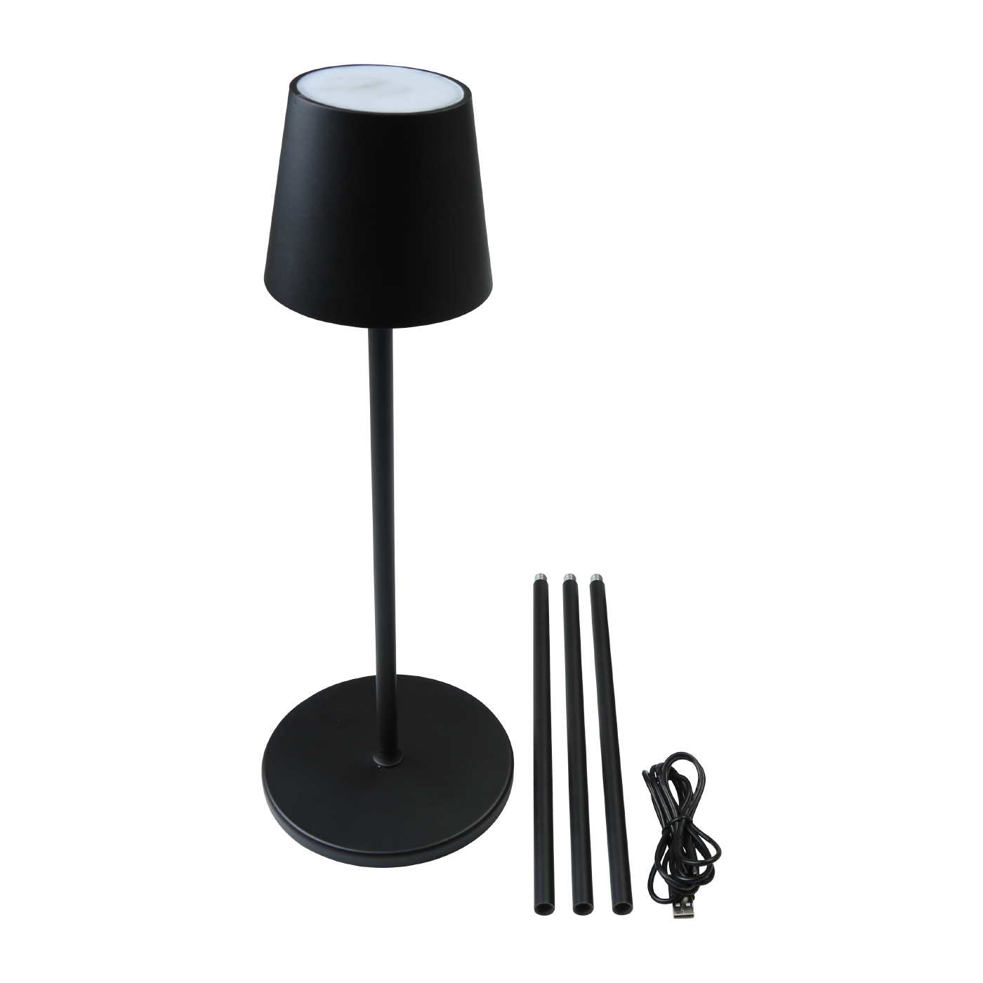 La lampada è formata da un kit di 4 aste che permettono di regolare l’altezza della lampada da un minimo di 42cm ad un massimo di 133cm.
