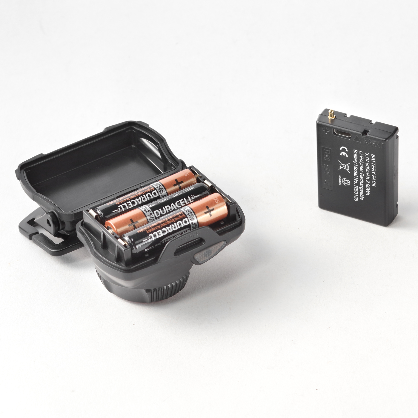 - Alimentabile tramite 3 batterie da 1.5V Alcaline (AAA) usa e getta oppure da 1.2V Ni-MH formato stilo (AAA).