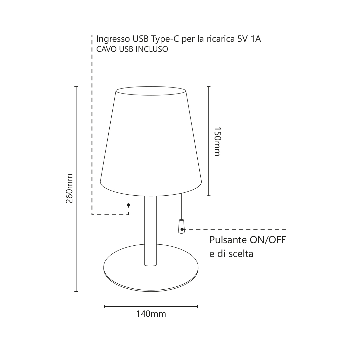 - Dimensioni: Ø140x260mm