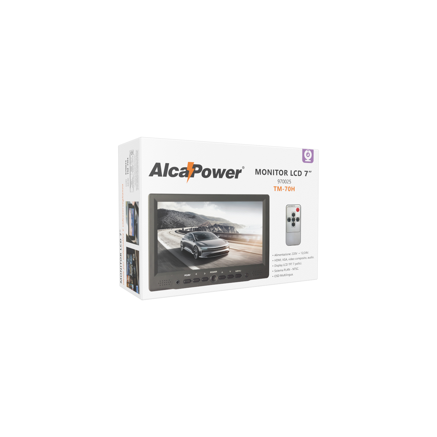 - 2 ingressi video (AV1/AV2) + 1 ingresso audio su cavetto connettori RCA/spinotto jack.