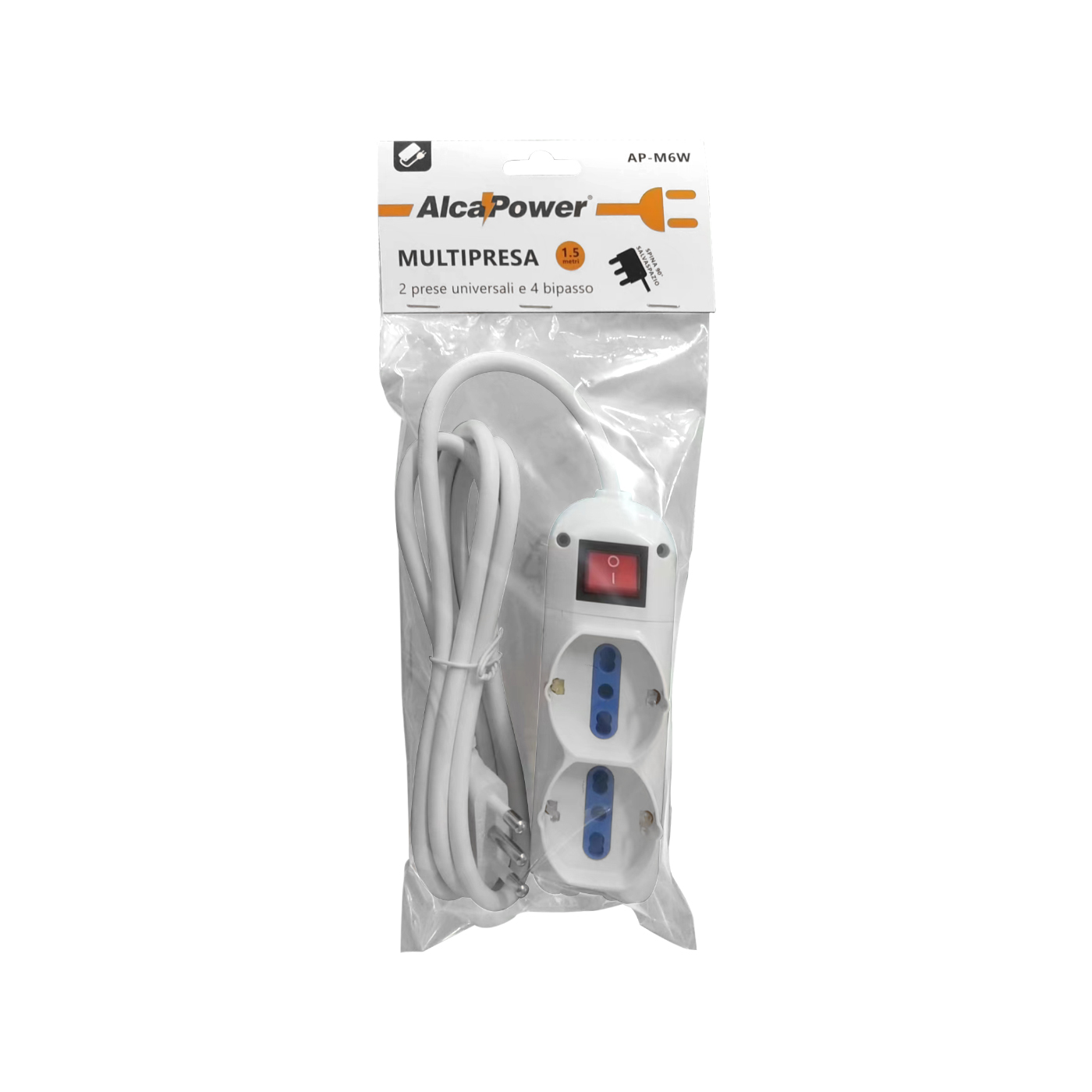 Tensione max: 250V AC Potenza max collegabile: 3500W Spina: 3 poli Italia 16A, 90° Presa: No. 2 - Schuko Bipasso No. 4 - 3 poli Italia 10/16A Lunghezza cavo: 1.5 metri Dotato di interruttore generale luminoso.