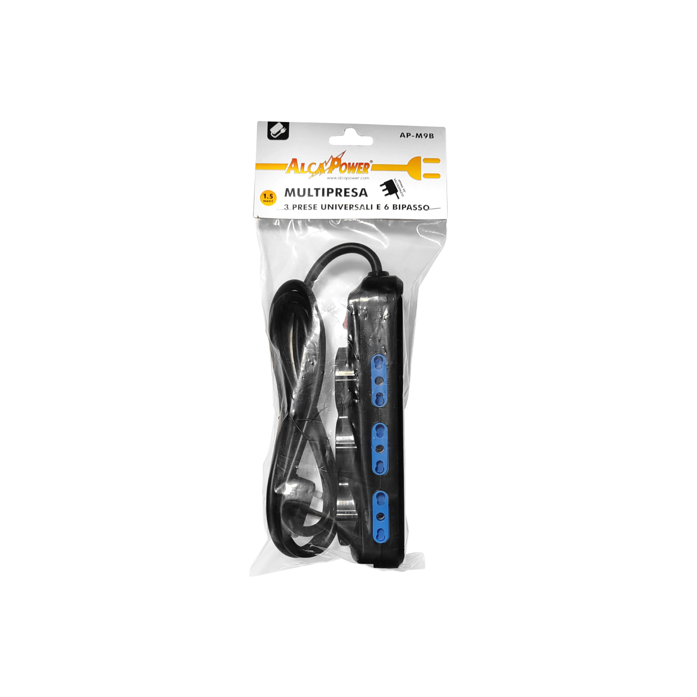 Tensione max: 250V AC Potenza max collegabile: 3500W Spina: 3 poli Italia 16A, 90° Presa: No. 3 - Schuko Bipasso No. 6 - 3 poli Italia 10/16A Lunghezza cavo: 1.5 metri Dotato di interruttore generale luminoso.