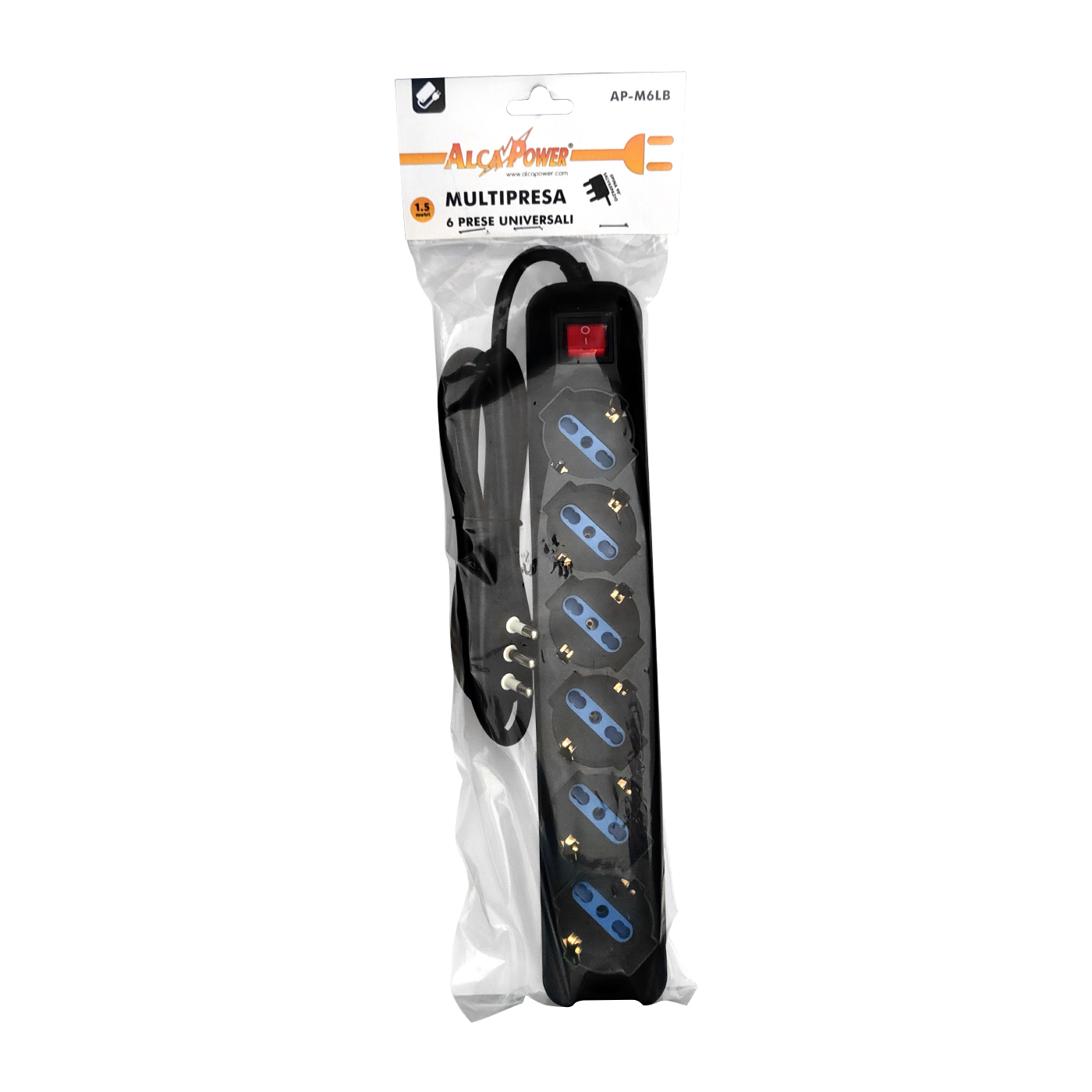 Multipresa con 6 prese univ. spina 90° 1.5m nera