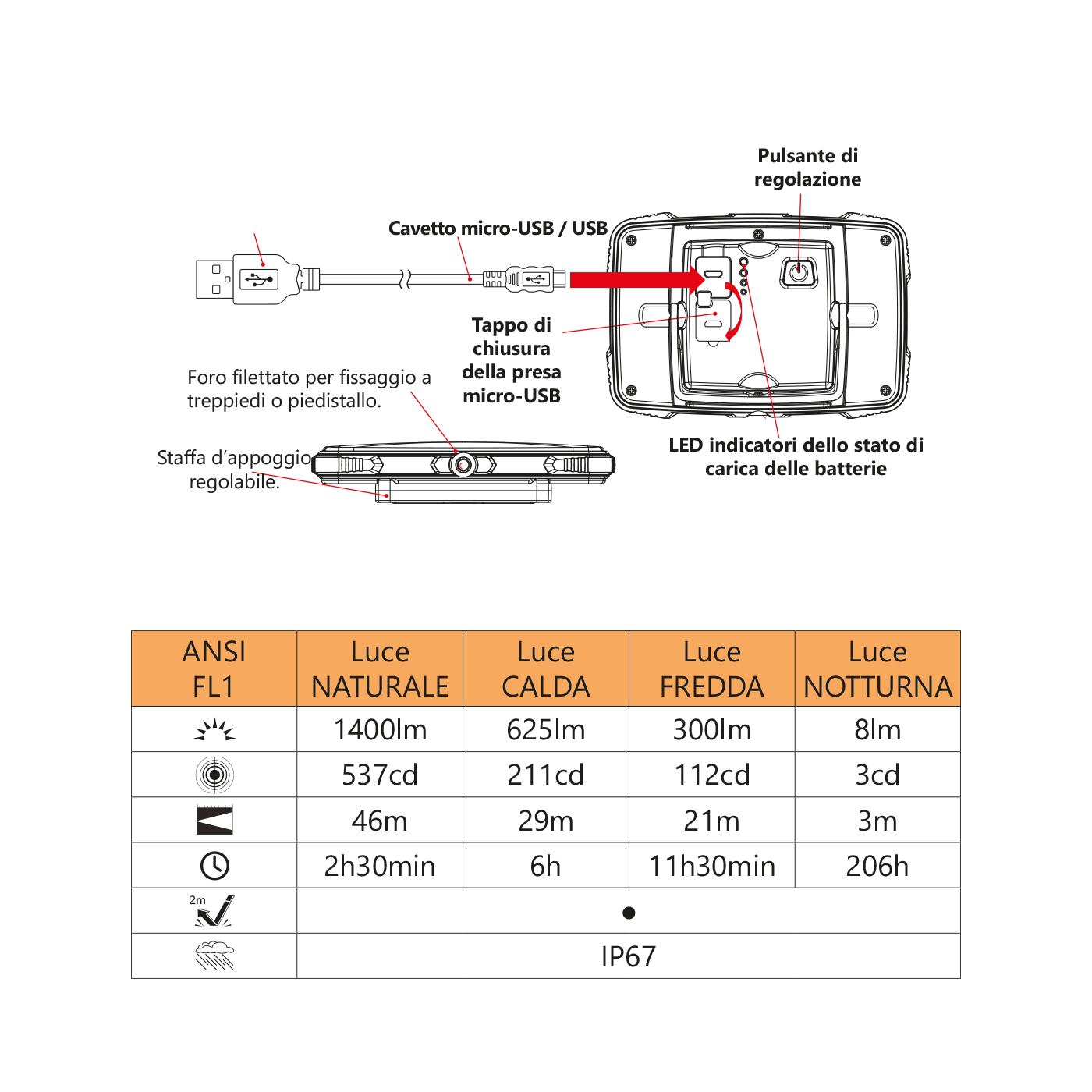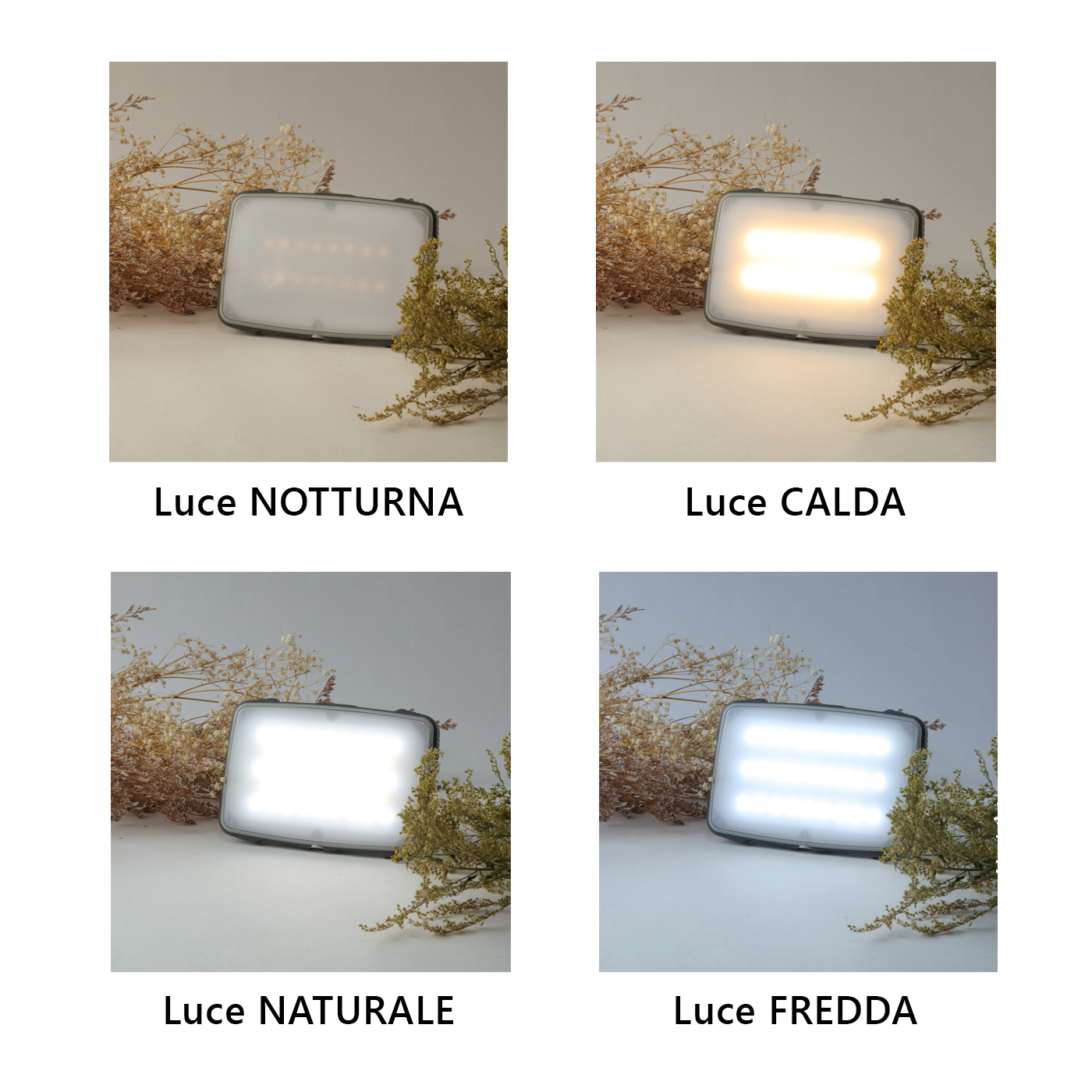 - Flusso luminoso regolabile: Luce NATURALE, Luce CALDA, Luce FREDDA, Luce NOTTURNA.