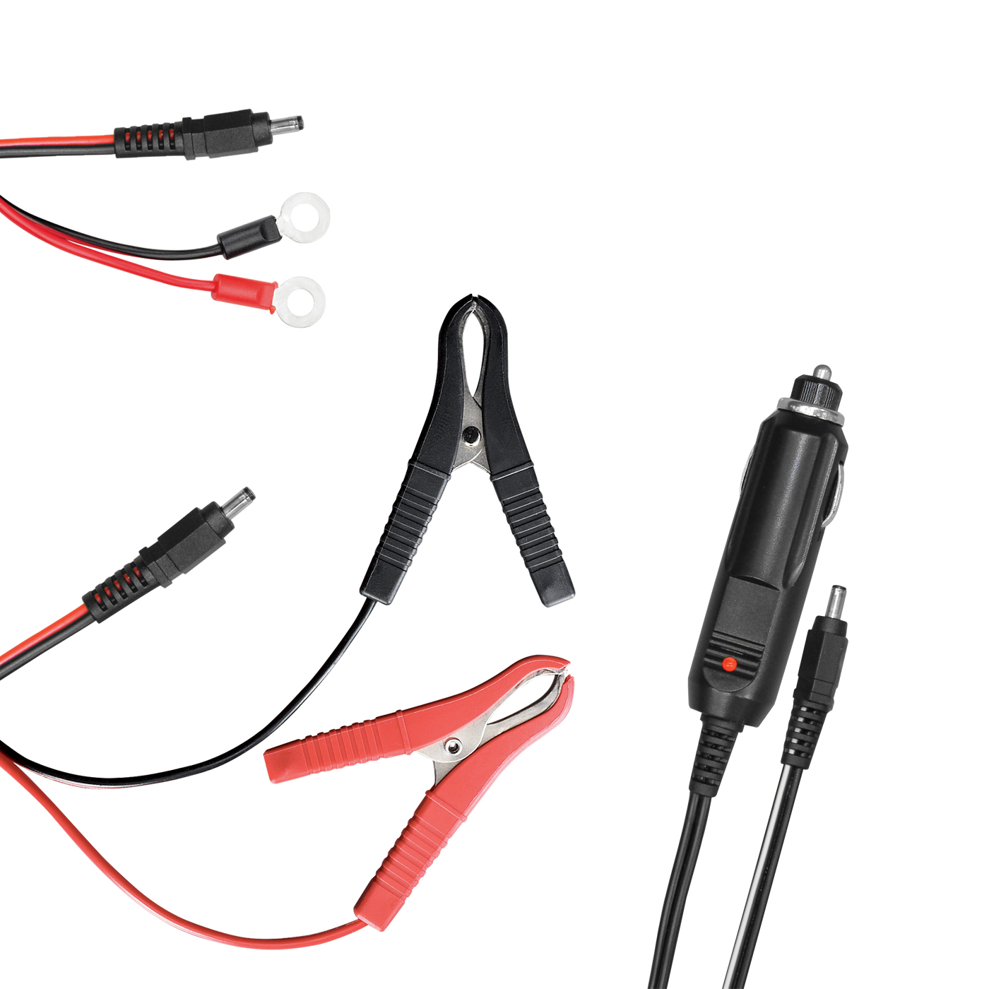 - Cavo con occhielli, cavo con pinze a coccodrillo e cavo con spina accendisigari in dotazione